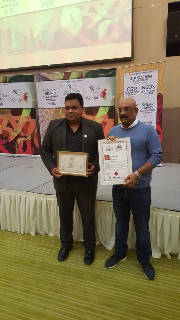 Dr. Usman Zafar was awarded as a“Young Leader Achiever Awards in the MENA Region”by“World CSR Organization”at“GCC Leadership Awards”on 27th March 2019 at Novotel Hotel Abu Dhabi, United Arab Emirates.