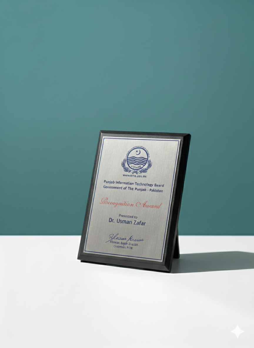 Awarded by the Punjab IT Board for contributions to national-level digital transformation.