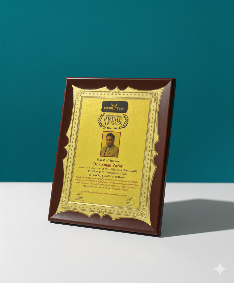 Recognizing Dr. Usman Zafar for outstanding global leadership, business excellence, and his impact as Chairman of World Business Hub (WBH).