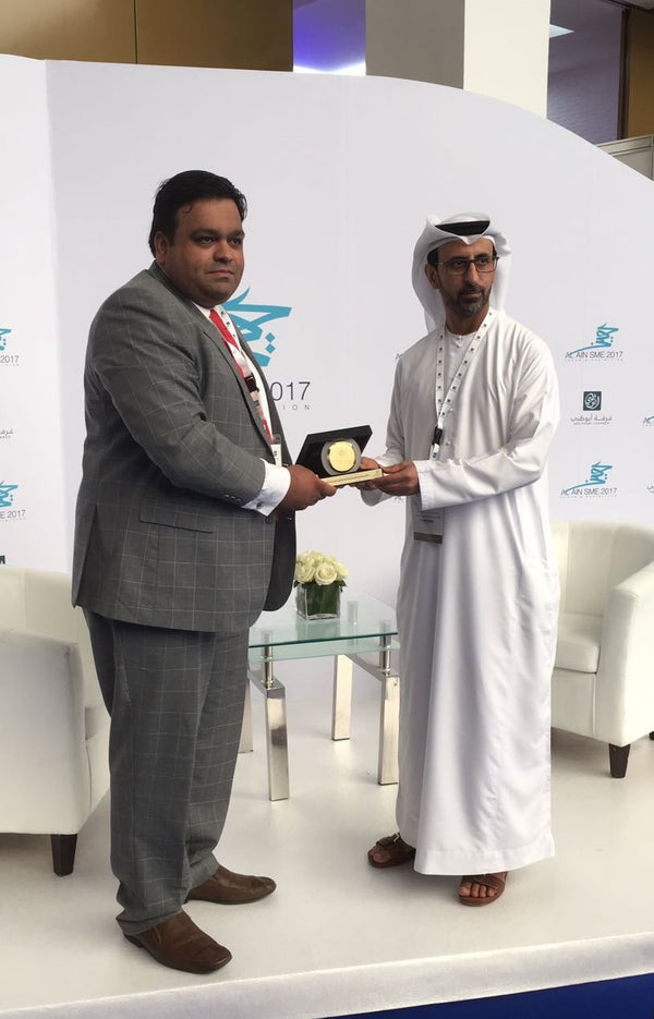 Dr Usman Zafar Recognized by the Senior Director of Abu Dhabi Chamber of Commerce at Asian SME EXPO Forum UAE 2017.