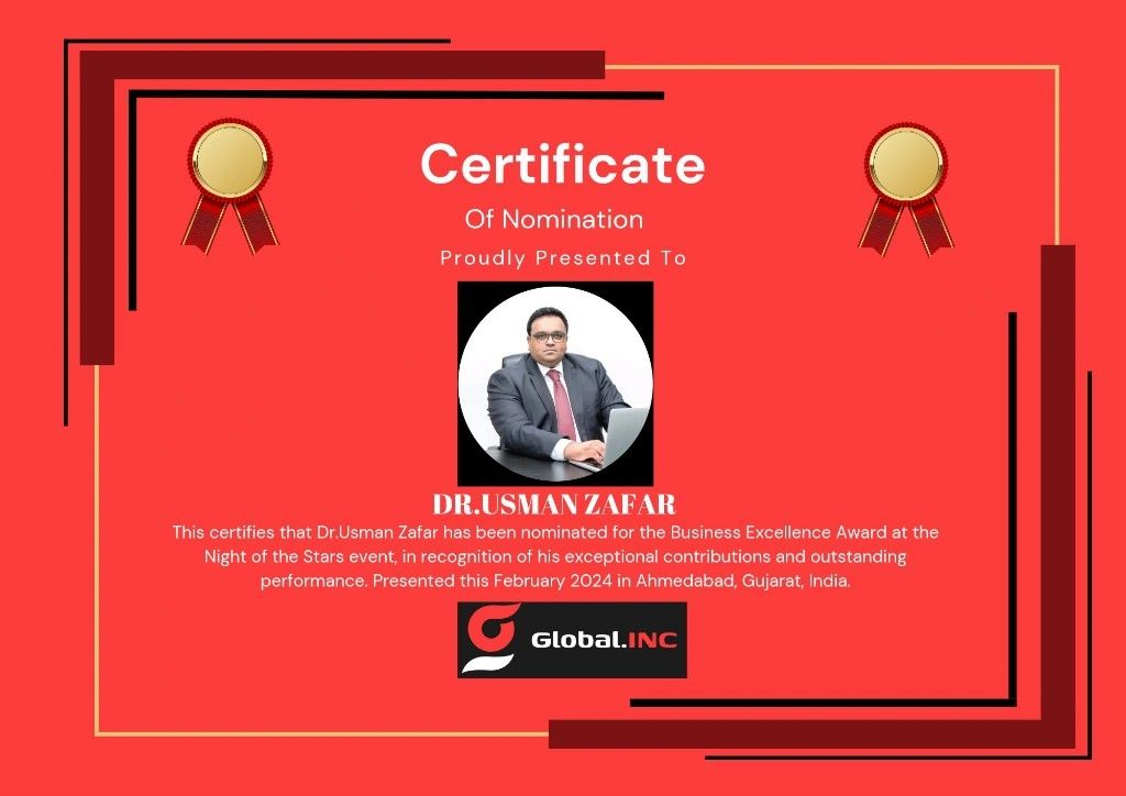 Nominated for the Business Excellence Award in recognition of exceptional contributions, leadership impact, and outstanding professional performance at an international platform.