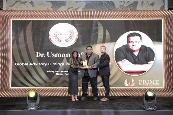 Dr. Usman Zafar attended the International Prime Awards as the Guest of Honor and delivered a keynote alongside UAE Royal Family members and global dignitaries. He was honored with the Global Advisory Distinguished Guest Honouree 2025 award for his contributions to innovation, leadership, and business transformation.